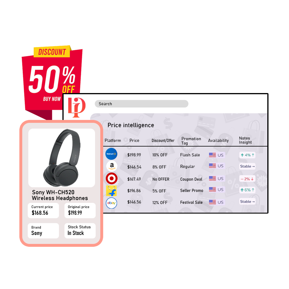 Gain clear insight into competitor pricing, discounts, and promotions across multiple platforms and regions.